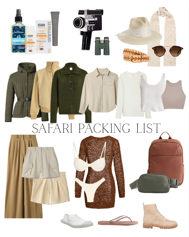 When it comes to your clothing, it is important to stick to earth tones: khaki, beige, olive, cream. Avoid bright blue + black, because these colors attract tsetse flies, (which is especially an issue in parts of East & Southern Africa) Also avoid neon, or super bright colors since these colors can startle wildlife.